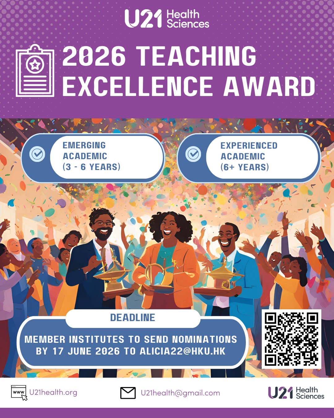 [Deadline EXTENDED to 10 April 2026 at 17:00 HKT] Open to all health sciences students from U21 HSG Member Institutions, this funding provides an opportunity to present student-led projects, initiatives, or activities related to the 2026 Annual Meeting themed "Adaptive Intelligence: Reshaping Health Education and Practice in a Culturally Diverse World" in Hong Kong.