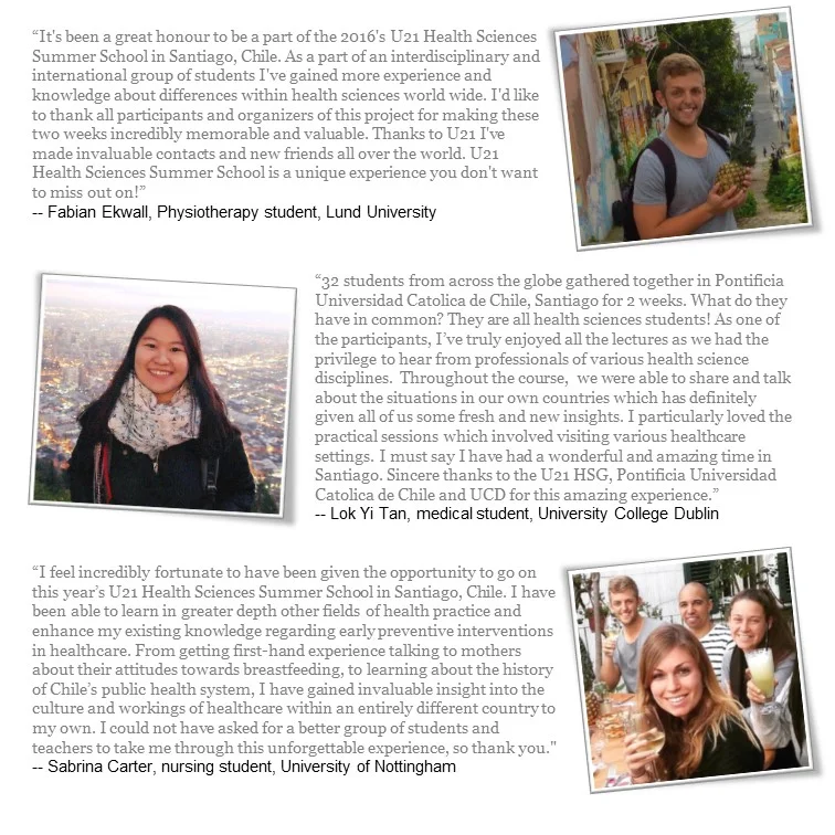 The 2016 U21 HS Summer School aimed to demonstrate how the use of preventative interventions early in life can be a potent tool to fight chronic diseases later in life. For example, disorders such as cardiovascular disease, obesity, type 2 diabetes and metabolic disturbances, osteoporosis, chronic obstructive lung disease, some forms of cancer and mental illnesses have been associated with unfavorable intrauterine and early life environments. U21 Health Science students were invited to learn what critical windows exist and what strategies can be implemented to improve the future health of individuals.